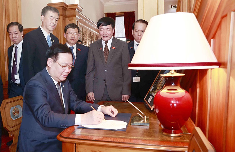 Chủ tịch Quốc hội Vương Đình Huệ ký sổ vàng lưu niệm tại Phủ Toàn quyền New Zealand.