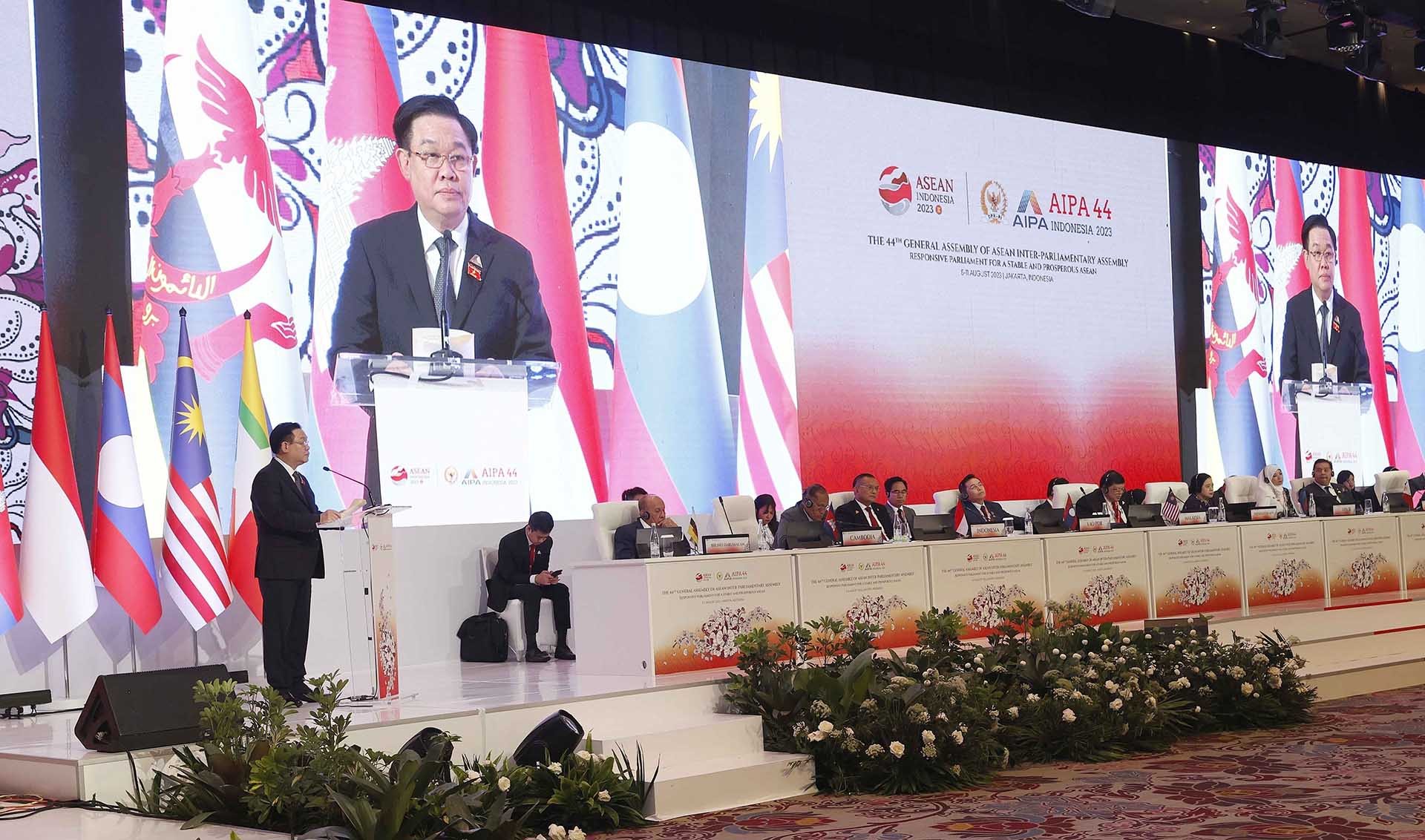 Chiều 7/8, Chủ tịch Quốc hội Vương Đình Huệ đã tham dự và có bài phát biểu tại phiên họp toàn thể thứ nhất Đại hội đồng lần thứ 44 Hội đồng Liên Nghị viện các quốc gia Đông Nam Á (AIPA-44) đang diễn ra ở tại thủ đô Jakarta, Indonesia.