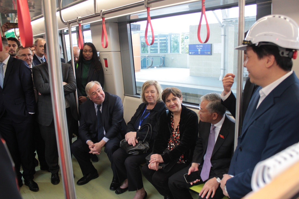 | Chủ tịch Thượng viện Pháp thăm tuyến đường sắt đô thị đoạn Nhổn - Ga Hà Nội . |