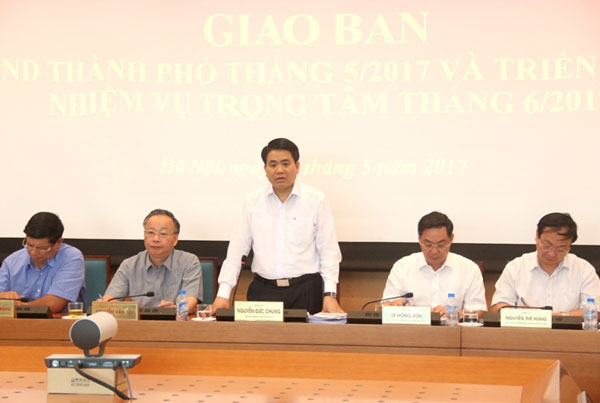 Sau khi nghe các báo cáo của các sở, ban, ngành, và các ý kiến nhận xét của các Phó Chủ tịch UBND thành phố, Chủ tịch UBND TP Hà Nội Nguyễn Đức Chung đánh giá cao những chuyển biến tích cực của các sở ngành trong tháng 5 khi hoàn thành khối lượng công việc lớn. Tuy nhiên, Chủ tịch Nguyễn Đức Chung lưu ý vẫn còn một số chỉ tiêu chưa đạt, nếu không quyết liệt hơn sẽ không thể hoàn thành kế hoạch. Vì vậy, Chủ tịch UBND TP Hà Nội đề nghị tất cả các sở cần rà soát lại các nhiệm vụ đã đăng ký từ đầu năm để tập trung chỉ đạo hoàn thành các mục tiêu đặt ra, việc nào khó khăn cần nêu các giải pháp cụ thể, dứt khoát không để nhiệm vụ chậm.