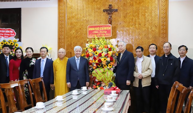 Trong không khí ấm áp, thân tình của Đại lễ Giáng sinh năm 2022 và chuẩn bị chào đón năm mới 2023, thay mặt lãnh đạo Đảng, Nhà nước, MTTQ Việt Nam, Chủ tịch Ủy ban Trung ương MTTQ Việt Nam Đỗ Văn Chiến đã gửi tới Cụ Giám mục, các quý vị linh mục, nam nữ tu sĩ và đồng bào Công giáo trong Giáo phận Kon Tum lời chúc mạnh khỏe, đón mùa Giáng sinh an lành, tràn đầy hồng ân của Thiên Chúa và luôn đoàn kết trong khối đại đoàn kết toàn dân tộc, hoàn thành tốt trách nhiệm của người công dân với đất nước và giáo hội. Từ đó, tích cực lan tỏa các giá trị bác ái - yêu thương của đức Chúa và truyền thống đoàn kết, tương thân tương ái của dân tộc đến đồng bào Công giáo trong khắp Giáo phận.