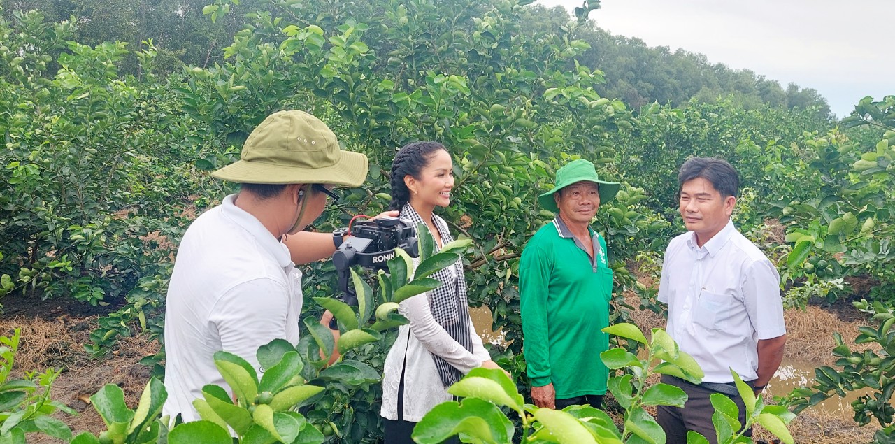 Hoa hậu H’Hen Niê trong quá trình ghi hình giới thiệu về đất và người Long An