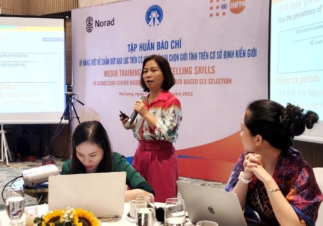 | Chuyên gia thuộc Quỹ Dân số Liên hợp quốc tại Việt Nam thông tin cho báo chí về tình hình bạo lực giới. Ảnh: An Luých |