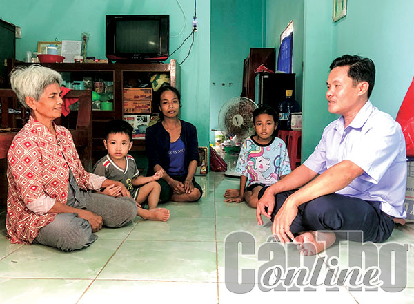 Cán bộ Mặt trận phường Thới Hòa (bìa phải), thăm hỏi, động viên gia đình bà Dương Thị Phát.