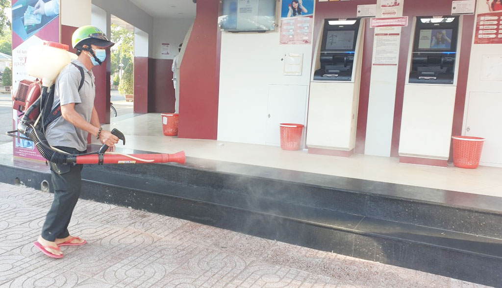 Song song đó, Hội sở Agribank Chi nhánh tỉnh Long An, các chi nhánh và phòng giao dịch trực thuộc trên địa bàn tỉnh cũng phối hợp ngành y tế phun thuốc khử trùng các khu vực công cộng (sảnh giao dịch, sảnh các tầng, thang bộ, thang thoát hiểm, nhà ăn, các trụ ATM,…); vệ sinh các vị trí thường xuyên tiếp xúc như tay nắm cửa, bề mặt quầy giao dịch,… nhằm hạn chế đến mức thấp nhất các nguy cơ lây nhiễm dịch bệnh.
