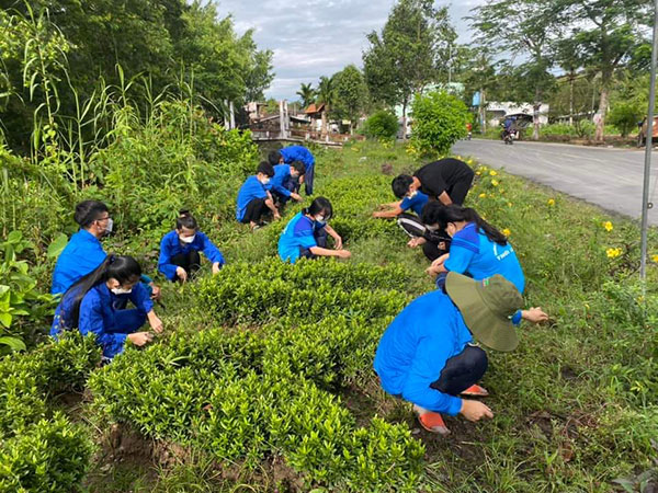 ÐVTN xã Tân Thạnh ra quân phát quang, chăm sóc hoa dọc theo đường tỉnh 922.
