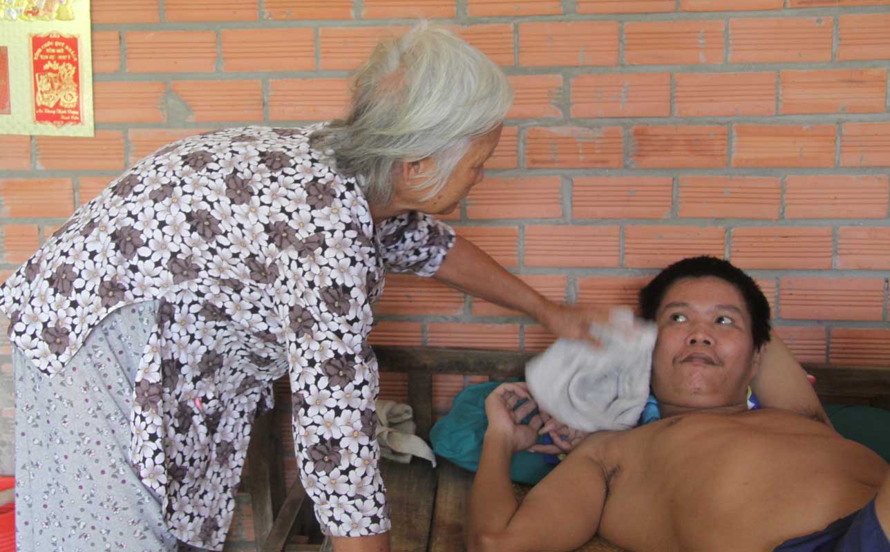 Bà Đỗ Thị Ái chăm sóc người con bị nhiễm chất độc da cam