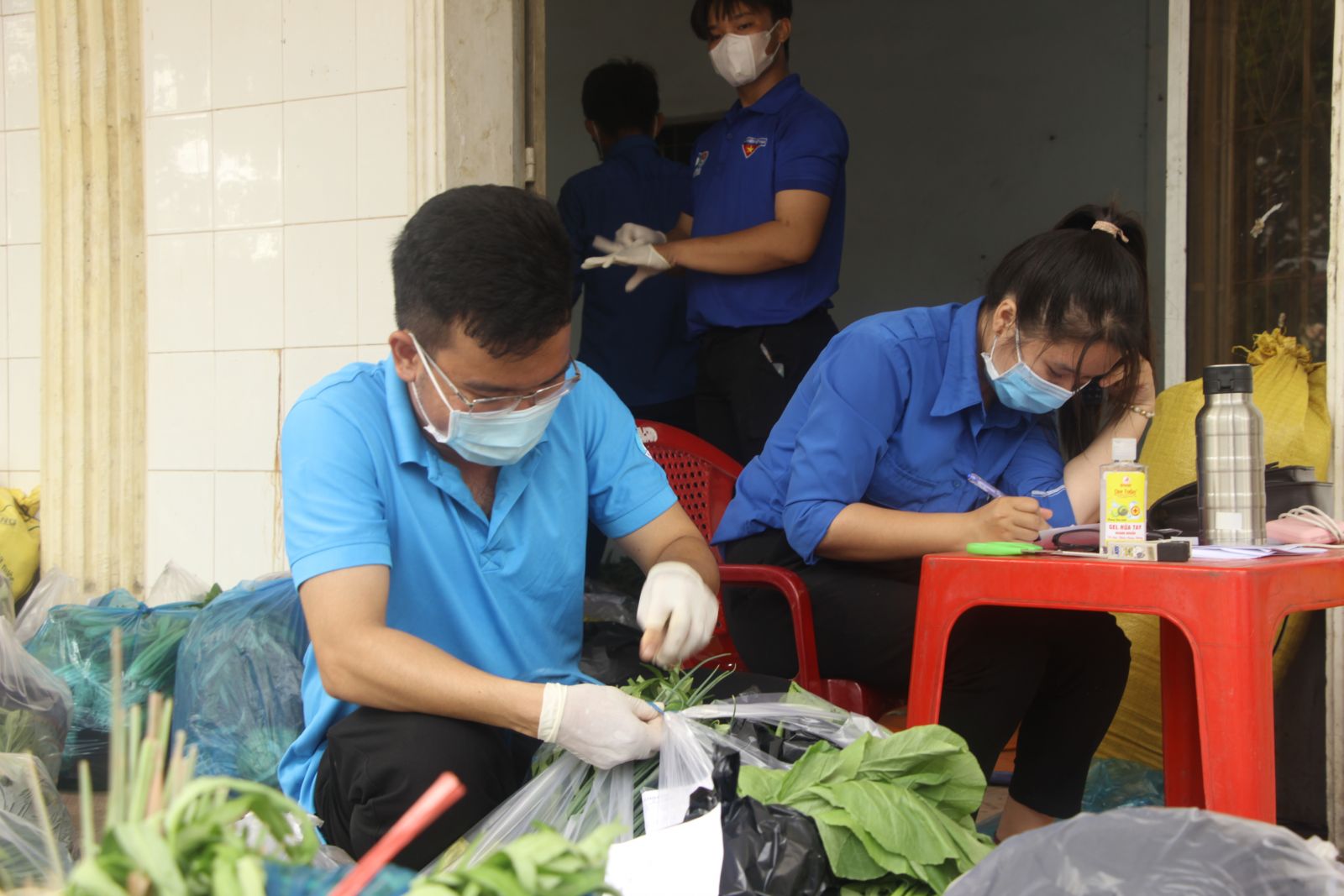 Không khí làm việc tại điểm cung ứng rau, củ, quả hết sức khẩn trương. Chỉ sau 2 ngày hoạt động, mỗi ngày, điểm cung ứng tiếp nhận hơn 100 đơn hàng khắp các xã, thị trấn trong huyện nên áp lực công việc khá cao. Người soạn đơn hàng, ghi chú, người chuyển hàng ra phía trước, kiểm tra lại lần cuối trước khi giao. Ai cũng đeo khẩu trang, bao tay nhựa bảo vệ sức khỏe bản thân. Sau khi nhận thông tin về đơn hàng, đội ngũ giao hàng ở xã đến điểm tập kết và đi giao nhưng cũng có đôi lúc gặp chuyện “dở khóc, dở cười”.