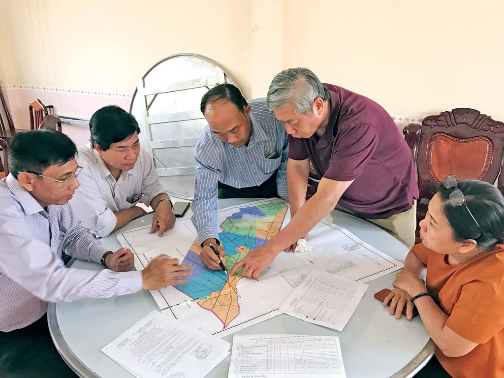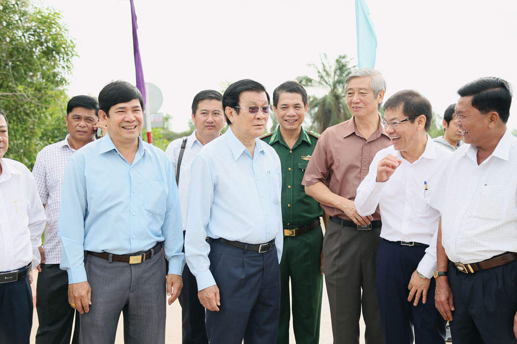 Ông Nguyễn Đức Quang (thứ 3, phải qua) cùng nguyên Chủ tịch nước - Trương Tấn Sang và lãnh đạo tỉnh Long An đi khảo sát địa điểm để xây cầu giao thông nông thôn