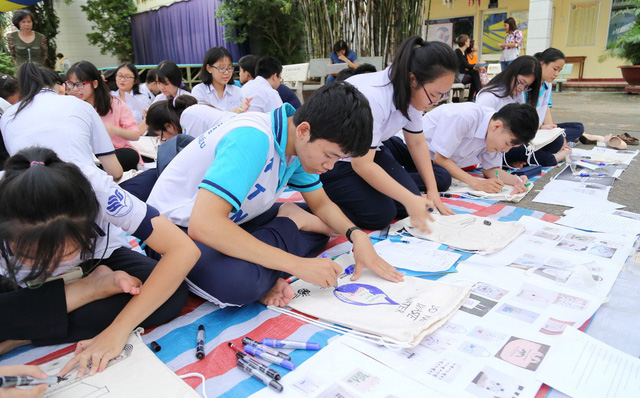 Một tiết hoạt động ngoại khóa về thiết kế bao bì bảo vệ môi trường của học sinh Trường THPT Bùi Thị Xuân (Q.1, TP.HCM) - Ảnh: Như Hùng