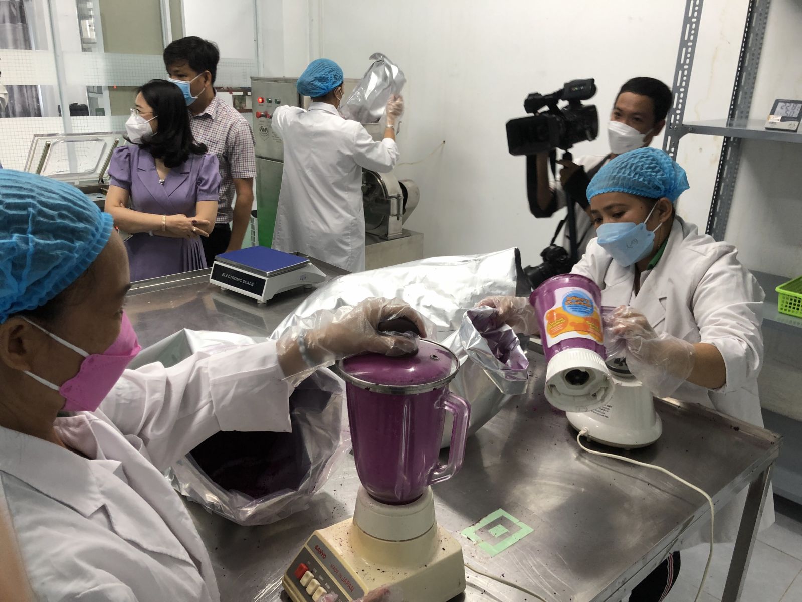 Công nhân thực hiện các công đoạn trong sản xuất bột mịn thanh long