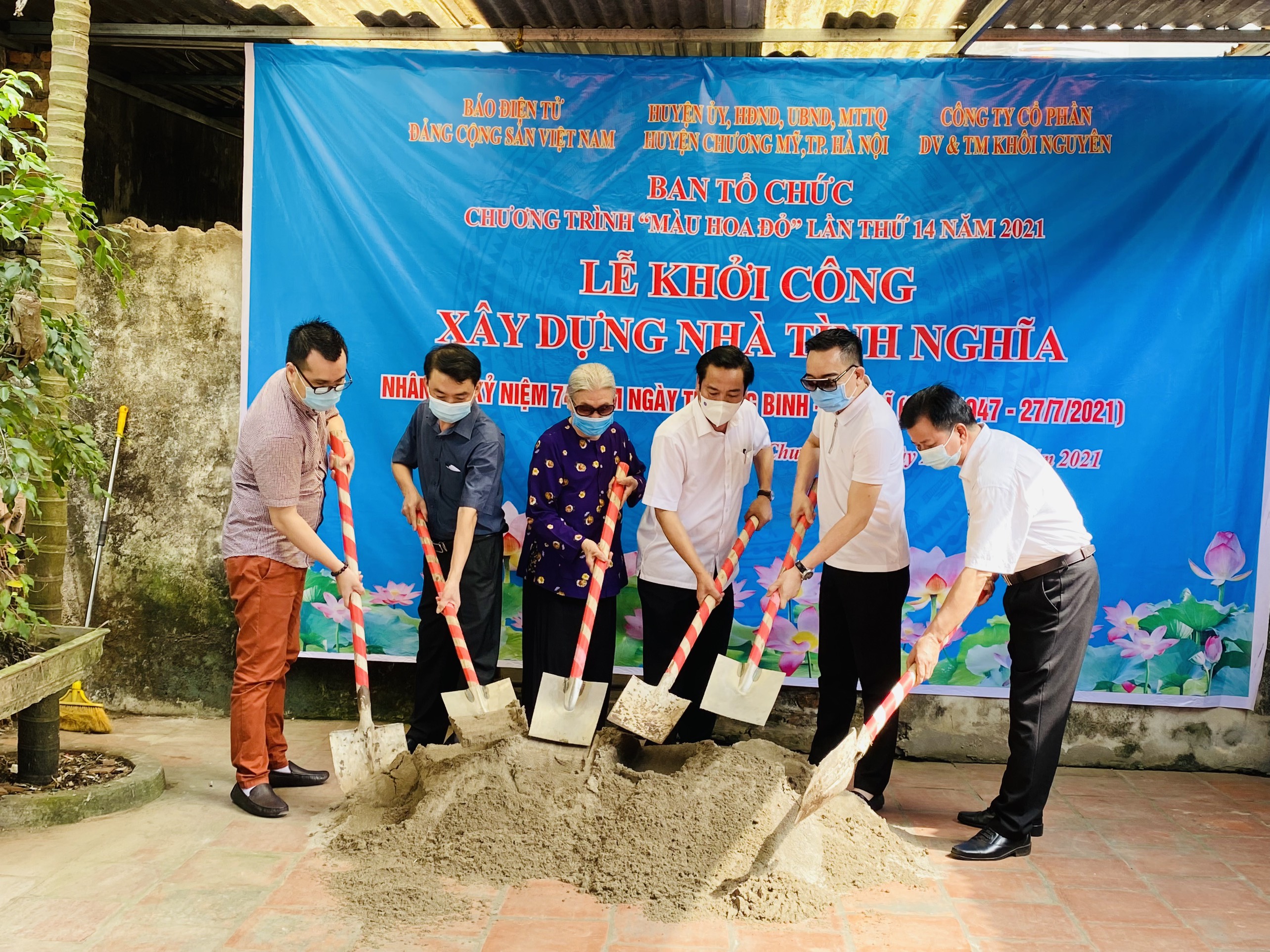 | Đại diện đoàn công tác chương trình Màu hoa đỏ năm 2021 khởi công xây dựng nhà tình nghĩa tại xã Hợp Đồng, huyện Chương Mỹ, TP. Hà Nội (Ảnh:KS) |