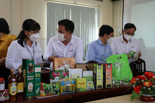 Phó Giám đốc Sở Nông nghiệp và Phát triển nông thôn - Đinh Thị Phương Khanh (thứ 2, trái qua) kiểm tra, thẩm định các sản phẩm đăng ký chương trình OCOP