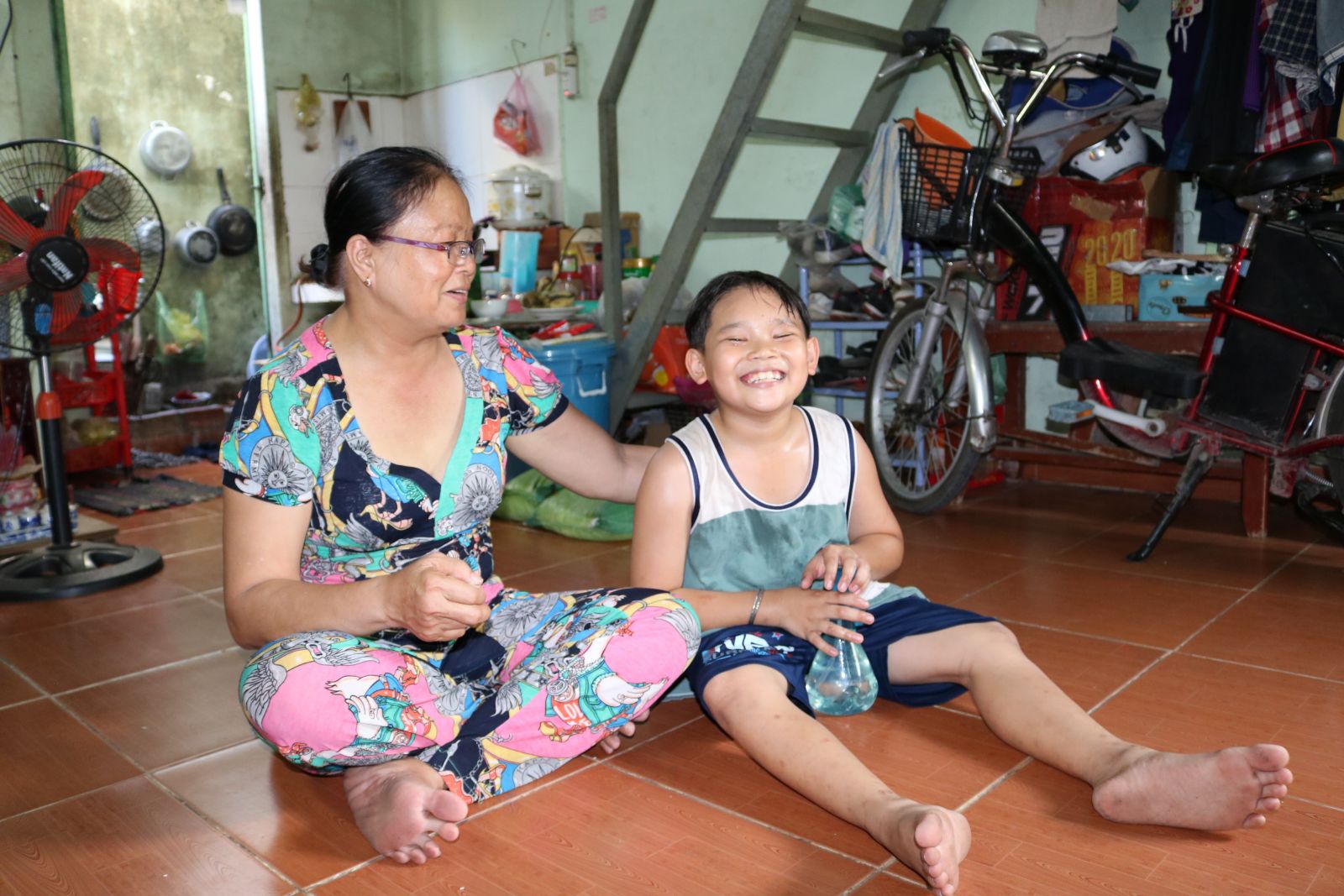Vất vả, nhọc nhằn là thế nhưng niềm an ủi của chị Ngọc chính là 2 đứa con trai rất ngoan, lễ phép và yêu thương mẹ. Hôm chúng tôi đến, chị Ngọc chỉ cho chúng tôi xem trên chiếc tủ nhựa nhỏ ở góc phòng có một bàn thờ với tấm di ảnh một phụ nữ còn rất trẻ. Chị cho biết: "Hồi bố 2 thằng nhỏ ôm hũ tro cốt vợ bỏ đi, thằng lớn chỉ mới 5 tuổi, thằng nhỏ còn ẵm ngửa. Lúc đó, tôi và má mang 2 đứa sang phòng mình nuôi luôn. Ông ấy đi biệt tích, không để lại bất cứ món đồ gì về mẹ của chúng để tôi kể lại cho chúng biết. May sao hôm rồi lục được trong cái giỏ cũ nát lúc dọn phòng trọ về đây, tôi tìm thấy tấm ảnh thẻ của mẹ 2 thằng bé nên nhờ người ta rửa to hơn một chút để thờ và cho 2 đứa biết mặt mẹ ruột của mình. Tội nghiệp quá! Dù không sinh ra nhưng khi đã nhận nuôi, tôi xem như con ruột và sẽ có trách nhiệm đến cùng. Niềm mơ ước của tôi bây giờ là làm sao làm được giấy tờ cho 2 đứa con. Thằng lớn không có giấy chứng minh nhân dân, thằng nhỏ không có giấy khai sinh, tương lai của chúng rất mờ mịt".