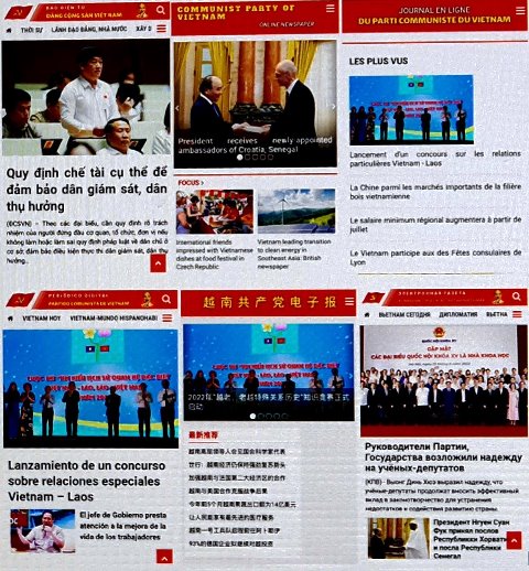 | Giao diện Báo điện tử Đảng Cộng sản Việt Nam với các thứ tiếng: Việt, Anh, Pháp, Trung Quốc, Nga, Tây Ban Nha... (Ảnh: HNV) |