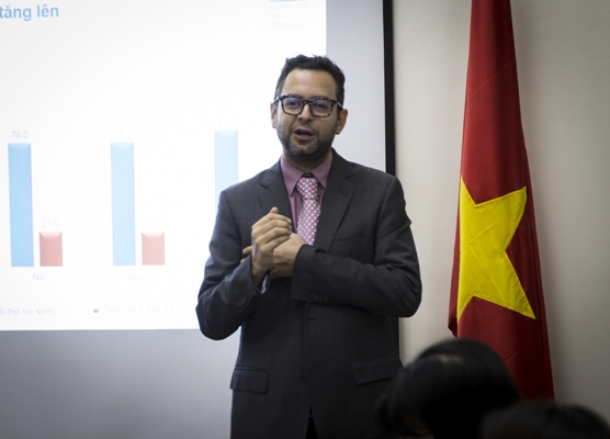 Ông Nuno Cunha: Chúng tôi hiểu rằng người dân sẽ không hài lòng với việc tăng tuổi nghỉ hưu, đây là một quyết định khó khăn. Tuy nhiên nếu nhìn vào số liệu về tuổi thọ trung bình, đặc biệt là tuổi thọ của những người sống từ 60 trở lên, có thể thấy là ngày nay một phụ nữ Việt Nam khi đạt đến tuổi 60 thì có tuổi thọ trung bình đến 81.6. Như vậy nếu nghỉ hưu ở tuổi 55, phụ nữ Việt Nam sẽ nhận lương hưu hơn 26 năm. Tưởng tượng là nếu người này bắt đầu tham gia lao động từ 25 tuổi, tối đa có thể đóng được 30 năm (thậm chí ít hơn). Như vậy đóng 30 năm để hưởng lương hưu 26 năm là điều không thể. Do vậy không hề khó khi thấy được thách thức mà hệ thống cần xử lý. Lần này tình hình càng khó khăn hơn, không chỉ là việc tuổi thọ tăng, mà còn ở một yếu tố khác, đó là tỷ lệ dân số lao động trên 1 người già sẽ giảm từ 6.6 xuống còn khoảng 2. Chúng tôi không tưởng tượng nổi hệ thống sẽ tồn tại như thế nào nếu các tham số như tuổi nghỉ hưu không được điều chỉnh.