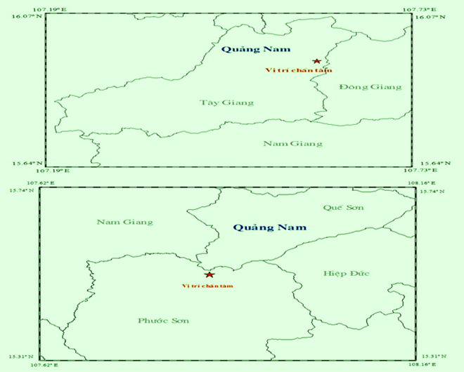 Hai trận động đất vừa xảy ra tại các huyện miền núi tỉnh Quảng Nam. (Nguồn: Viện VLĐC)