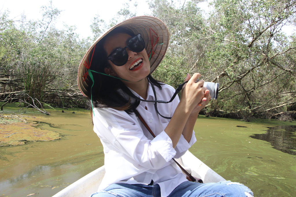 Nhà báo Đức Hạnh tác nghiệp tại hiện trường