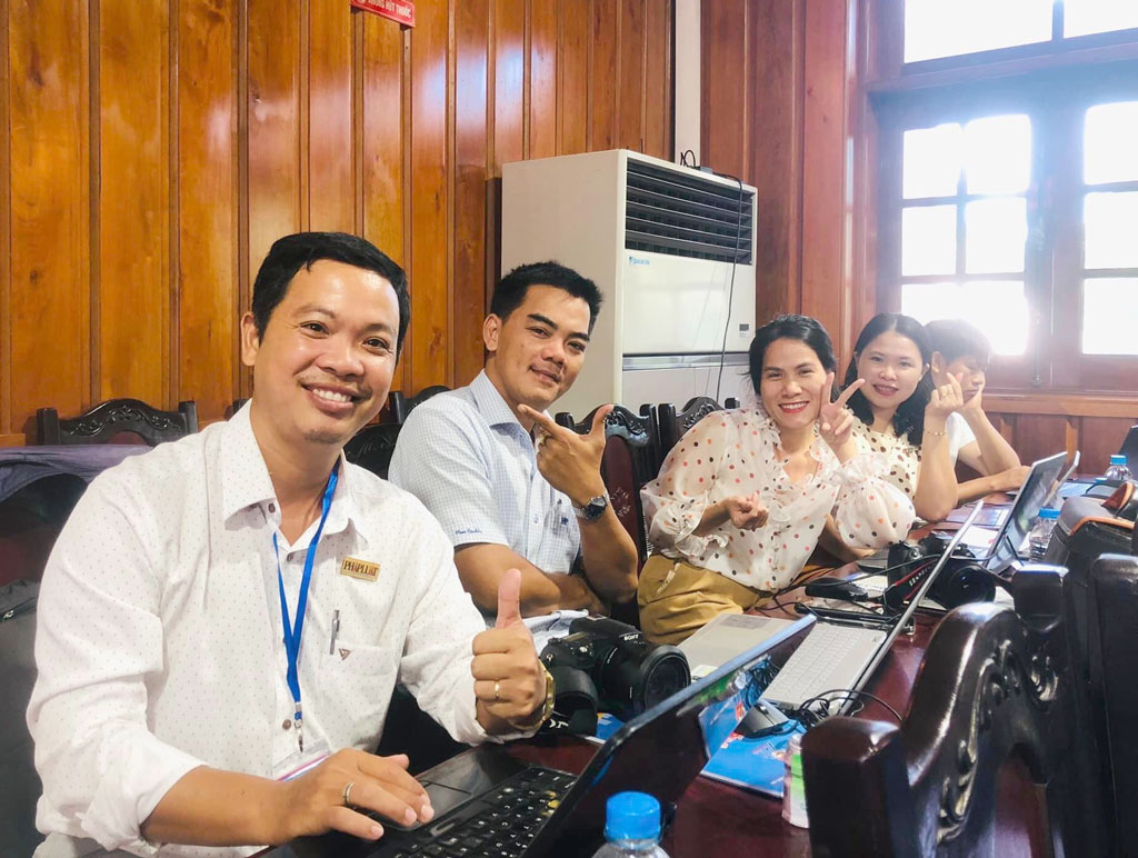 Phóng viên Huỳnh Du (bìa trái) cùng đồng nghiệp từ các báo, đài khác tác nghiệp tại một hội nghị (ảnh: NVCC)