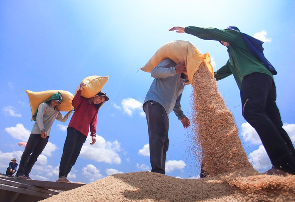 Phóng viên Huỳnh Du luôn chú trọng đến ánh sáng, góc chụp để các sản phẩm hình ảnh trên báo của mình bảo đảm thông tin và tính nghệ thuật (Trong ảnh: Hình ảnh nghề vác lúa mướn do phóng viên Huỳnh Du chụp)