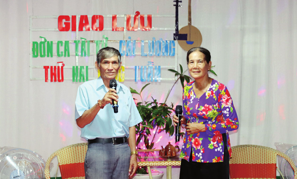Sau khi kết hôn, vợ chồng ông Cao Thanh Tràng (SN 1957) và bà Nguyễn Thị Phi (SN 1971, xã Tân Đông, huyện Thạnh Hóa) phát hiện có cùng đam mê ĐCTT. Ông Tràng hiện là Chủ nhiệm Câu lạc bộ (CLB) ĐCTT ấp 1, xã Tân Đông. “CLB được thành lập từ năm 2018 đến nay với khoảng 20 hội viên (HV). Định kỳ, lúc 18 giờ, ngày 16 Âm lịch hàng tháng, HV tập trung tại trụ sở ấp để sinh hoạt và biểu diễn văn nghệ. Thỉnh thoảng, CLB tổ chức chương trình giao lưu với các xã lân cận. Ngoài ra, vào dịp kỷ niệm Ngày Sân khấu Việt Nam (12-8 Âm lịch), CLB cũng tổ chức các hoạt động giao lưu ĐCTT. Đến cuối năm thì tiến hành tổng kết hoạt động” - ông Tràng cho biết.