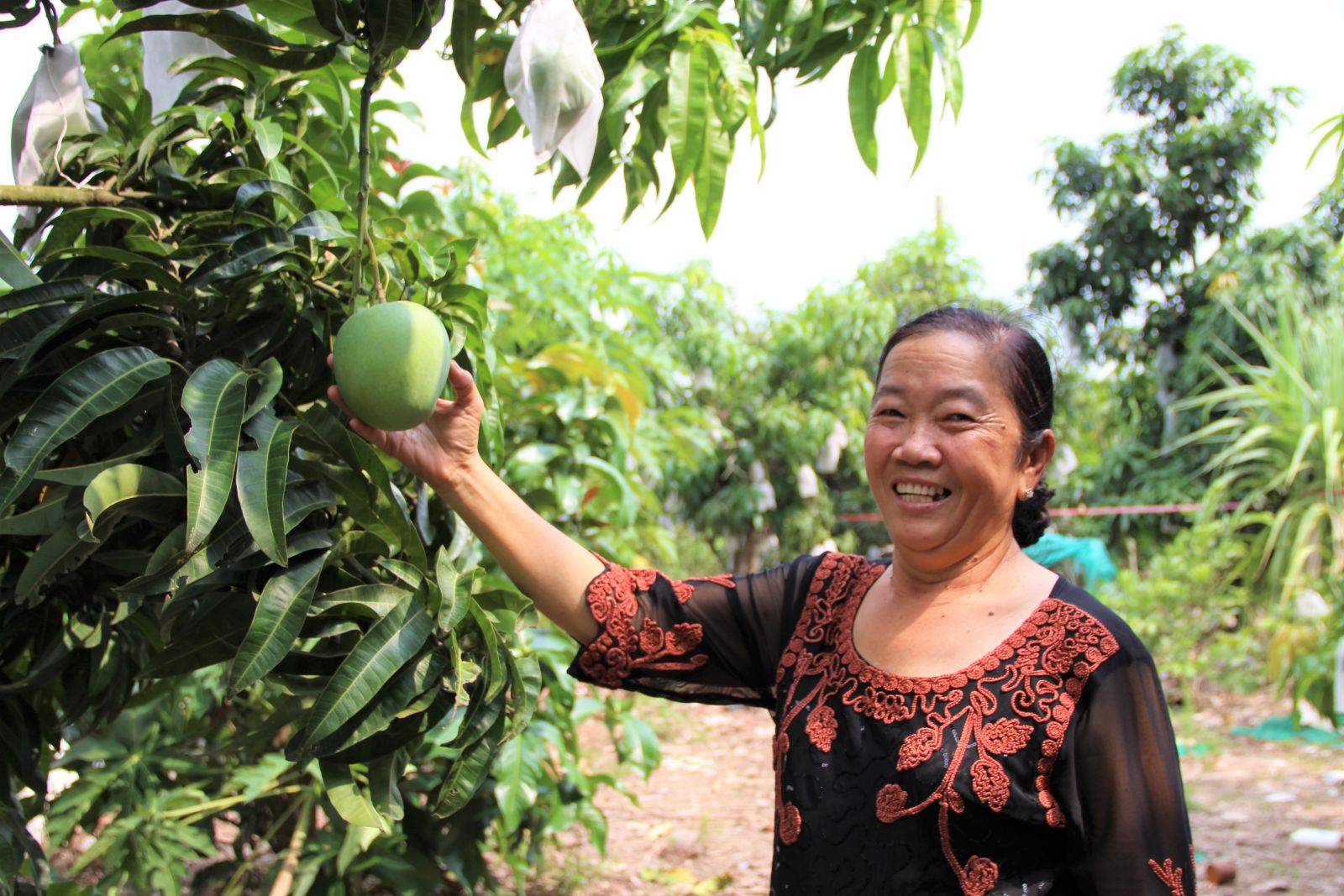 Bà Triển bên vườn trái cây của gia đình