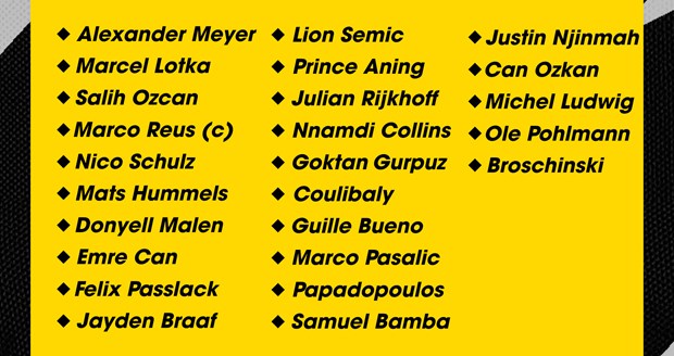 Danh sách cầu thủ Borussia Dortmund đến Việt Nam. (Ảnh: CLB Dormund)