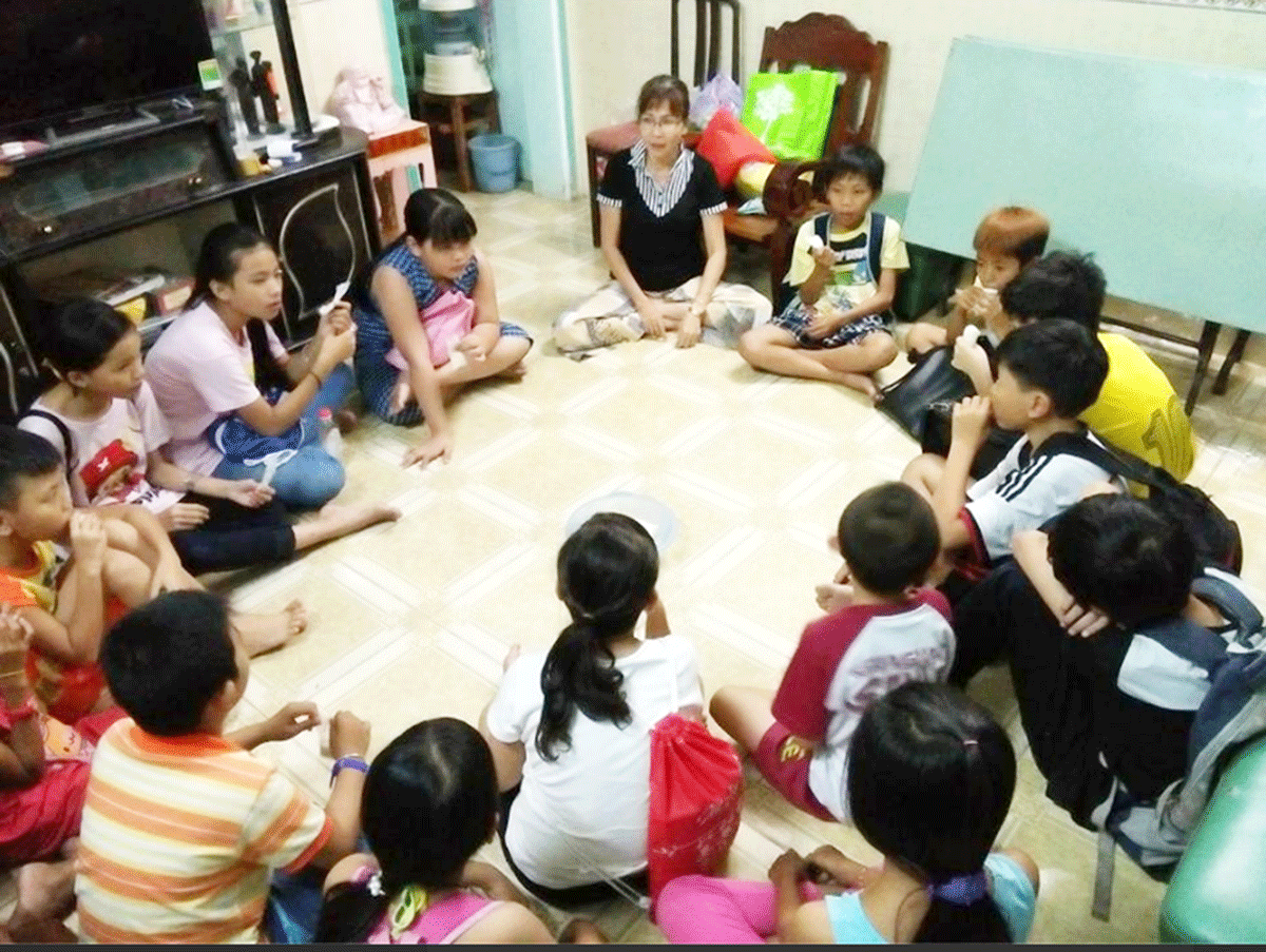 Cô Uyên và học trò tại nhà cô.