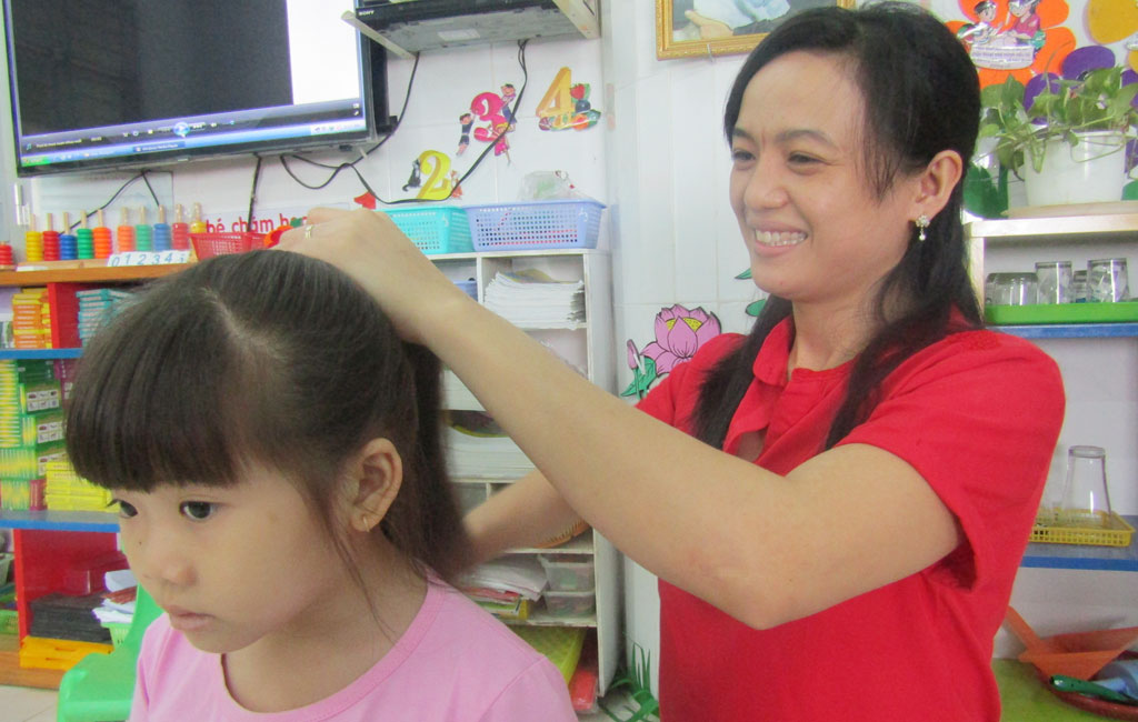 Với cô, dạy dỗ trẻ mầm non không chỉ đơn giản là chăm sóc và chơi với trẻ mà còn giáo dục, định hướng để trẻ phát triển tư duy từ nhỏ, tạo những nền tảng để trẻ bước vào con đường học vấn sau này. Vì vậy, cô luôn nghiêm túc trong công tác nuôi dạy trẻ, ngoài những kiến thức vốn có, cô còn học hỏi từ đồng nghiệp, phụ huynh nhằm đổi mới cách giảng dạy phù hợp với trẻ.
