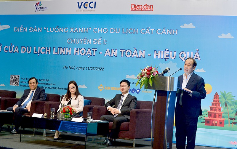 Với mong muốn sớm đưa du lịch sớm phục hồi và phát triển trong giai đoạn bình thường mới, ngày 11/3, tại Hà Nội, Liên đoàn Thương mại và Công nghiệp Việt Nam (VCCI) tổ chức diễn đàn "Luồng xanh cho du lịch cất cánh" dưới hình thức trực tiếp kết hợp trực tuyến.