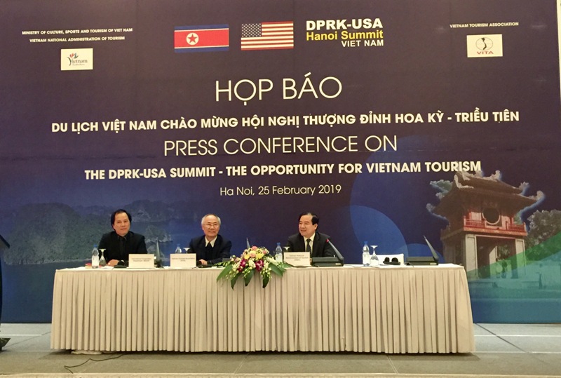 Chiều 25/2, Tổng cục Du lịch (Bộ Văn hóa, Thể thao và Du lịch) và Hiệp hội Du lịch Việt Nam tổ chức họp báo giới thiệu các hoạt động của ngành du lịch Việt Nam tới bạn bè quốc tế nhân Hội nghị Thượng đỉnh Hoa Kỳ - Triều Tiên lần hai diễn ra tại Hà Nội.