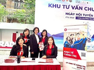 | Gian tư vấn tuyển sinh của chương trình Kinh tế chính trị tại Ngày hội tuyển sinh FTU 2023 “Con đường ra biển lớn”. Ảnh: TT |