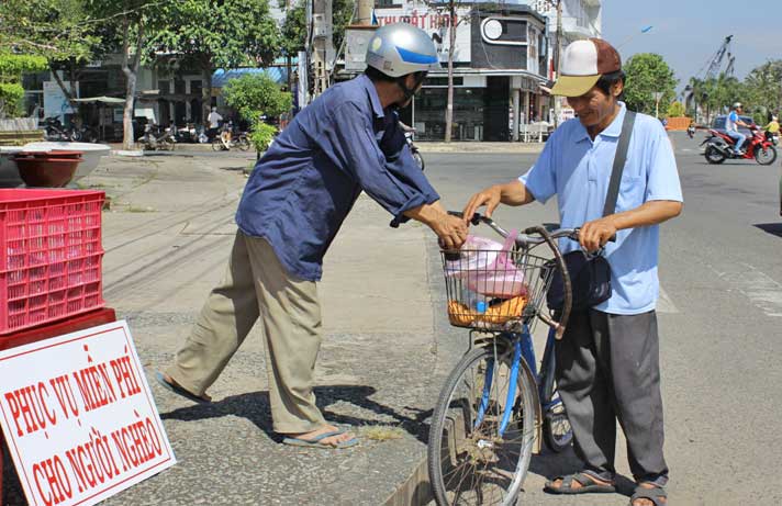 Cũng ở đó, vài buổi trưa trong tháng, những hoàn cảnh khó khăn lại được trao tay hộp cơm trưa miễn phí. Chỉ là bữa cơm chay nhưng là cả tấm lòng của các thành viên Câu lạc bộ Thiện Tâm dành cho những mảnh đời vất vả. Để có hơn 100 suất cơm chay phát vào buổi trưa, các tình nguyện viên phải đi chợ, chuẩn bị từ chiều hôm trước.