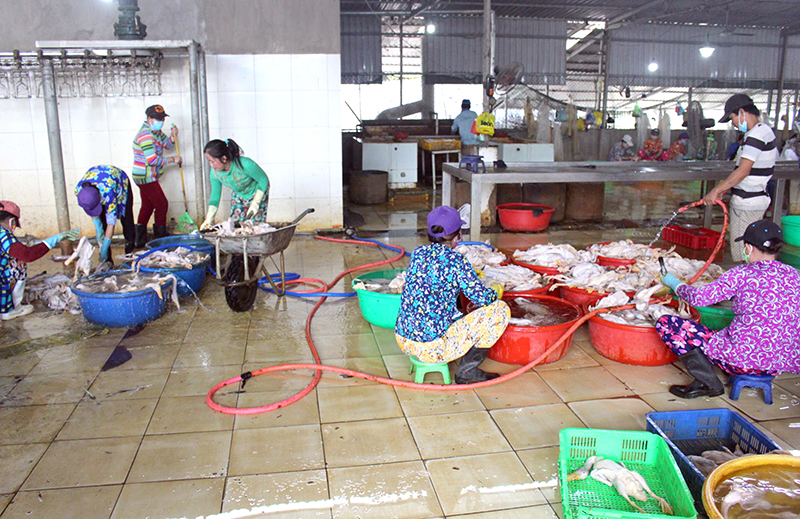 Nhiều công đoạn giết mổ gia cầm tại cơ sở vẫn làm thủ công, hằng ngày thải ra lượng nước thải, rác thải rất lớn. Ảnh: KHẮC VIỆT