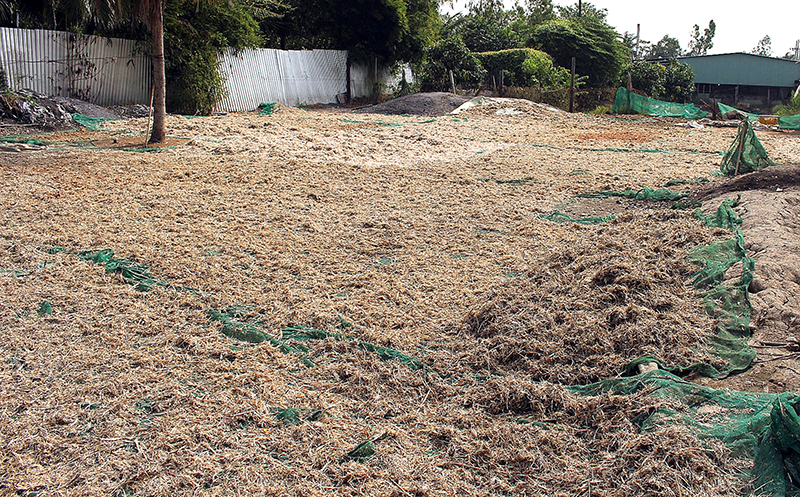 Sân phơi lông vịt của cơ sở giết mổ gia cầm tập trung Trường Phú phát tán mùi hôi thối ra môi trường xung quanh. Ảnh: KHẮC VIỆT