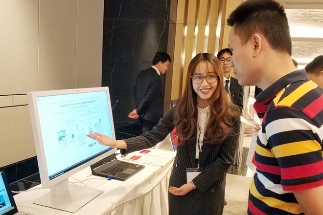 Giới thiệu giải pháp công nghệ của Fujitsu tại Hội nghị. (Ảnh: T.H/Vietnam+)