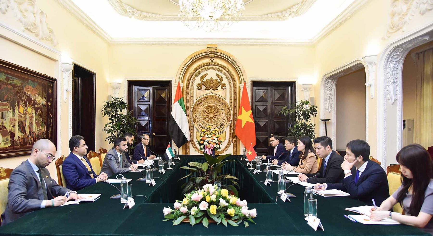 Sáng cùng ngày, Trợ lý Bộ trưởng Ngoại giao Nguyễn Minh Hằng đã hội đàm với Trợ lý Bộ trưởng Abdulnasser Al Shaali. Trợ lý Bộ trưởng Nguyễn Minh Hằng chúc mừng UAE tổ chức thành công Dubai EXPO 2020; bày tỏ vui mừng trước việc hai bên nối lại hoạt động trao đổi đoàn trực tiếp giữa lãnh đạo các Bộ ngành, thường xuyên phối hợp chặt chẽ và ủng hộ lẫn nhau tại các tổ chức quốc tế; mặc dù gặp khó khăn của đại dịch, kim ngạch thương mại hai chiều năm 2021 vẫn đạt 5,3 tỷ USD, tăng 21% so với năm 2020. Hai bên cũng trao đổi và thống nhất về các phương hướng và biện pháp thúc đẩy quan hệ hợp tác song phương trong thời gian tới như phối hợp kỷ niệm 30 năm thiết lập quan hệ ngoại giao (1993 - 2023); tăng cường hợp tác trên các lĩnh vực mà hai bên có thế mạnh, nâng cao hiệu quả hợp tác lao động; trao đổi về một số vấn đề quốc tế và khu vực.