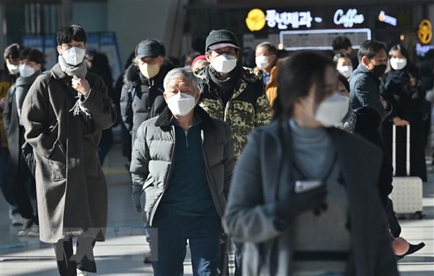 Người dân đeo khẩu trang phòng dịch COVID-19 tại Seoul, Hàn Quốc ngày 18/2/2022. (Ảnh: AFP/TTXVN)
