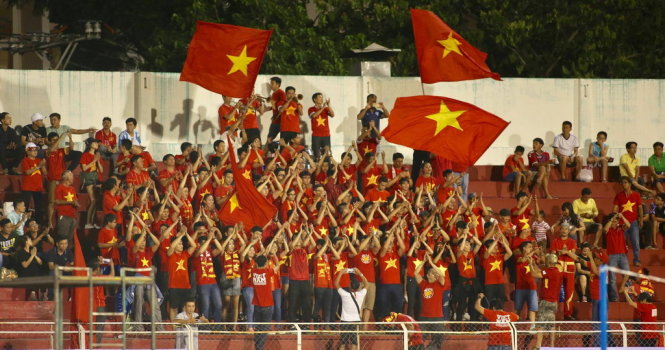 CĐV VN ủng hộ hết mình cho đội nhà trong trận gặp U-20 Argentina. Ảnh: N.K