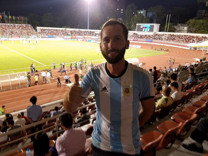 Đi du lịch tình cờ gặp may Đó là câu chuyện thú vị của Juan Ignacio, anh chàng CĐV người Argentina hiếm hoi trên khán đài sân Thống Nhất đêm 10-5. Ignacio đang ngụ tại TP.HCM những ngày cuối cùng trong chuyến du lịch đến VN kéo dài một tháng của mình. Và việc anh tới sân là hoàn toàn tình cờ.