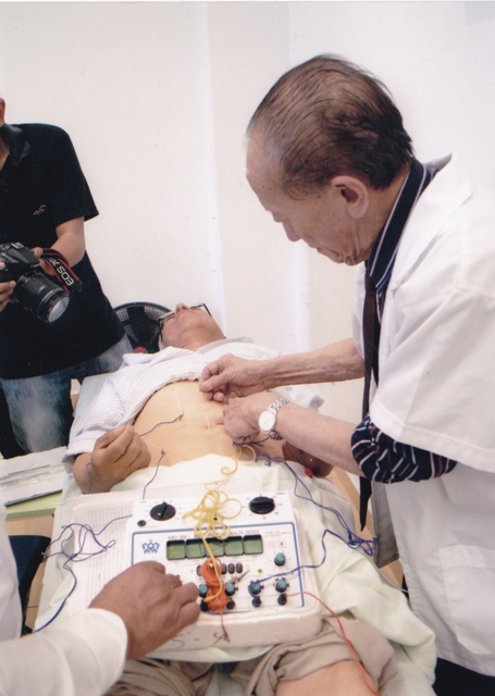 | Hình ảnh GS.TSKH Nguyễn Tài Thu bên bệnh nhân |