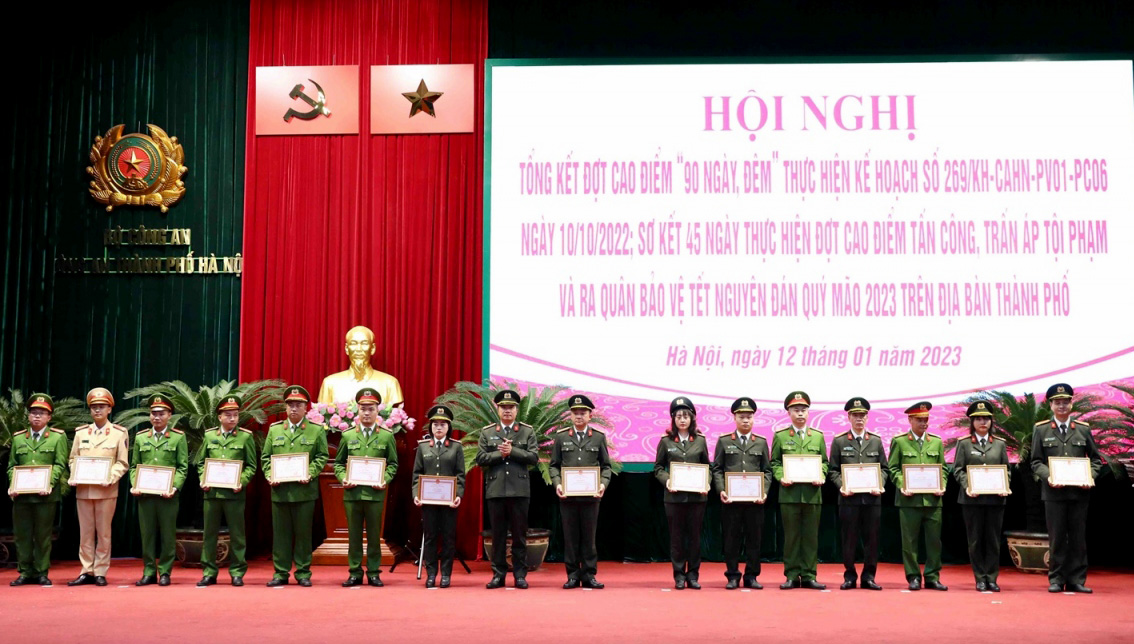 Trong ngày 12/1, Công an thành phố Hà Nội đã tổng kết "90 ngày cao điểm" thực hiện Kế hoạch triển khai các giải pháp bảo đảm hoàn thành các chỉ tiêu phục vụ triển khai quy định Luật Cư trú năm 2020 về sổ hộ khẩu và sơ kết 45 ngày thực hiện đợt cao điểm tấn công trấn áp tội phạm, bảo đảm an ninh, an toàn Tết Nguyên đán Quý Mão.