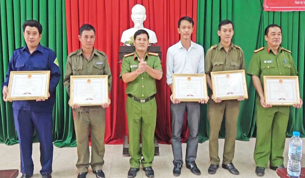 Thượng tá Trương Văn Vụ trao giấy khen cho 5 cá nhân