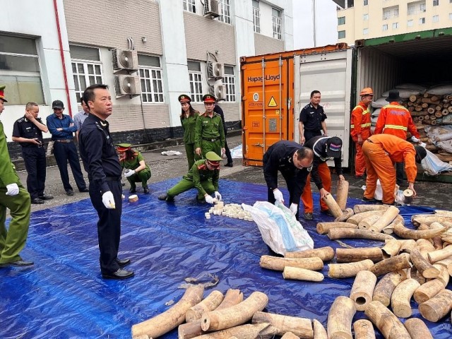 | Bắt giữ khoảng 7 tấn ngà voi tại Hải Phòng tháng 4/2022 (Ảnh tư liệu) |