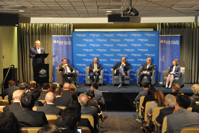 Đại sứ Việt Nam tại Hoa Kỳ Phạm Quang Vinh cùng với Đại sứ Úc tại Mỹ Joe Hockey, Đại sứ Hàn Quốc tại Mỹ Ahn Ho-young, và đại diện nhóm tác giả của bản báo cáo là bà Wendy Cutler, nguyên Phó thường trực Đại diện Thương mại Mỹ và ông Peter Grey, nguyên Đại sứ Úc tại WTO đã chủ trì buổi công bố các kết quả và kiến nghị của bản báo cáo.