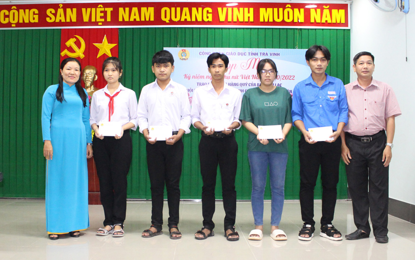 Dịp này, Công đoàn ngành Giáo dục tỉnh phối hợp với Ban Liên lạc Hội đồng hương thành phố Trà Vinh tại Thành phố Hồ Chí Minh trao 05 suất học bổng (2,1 - 03 triệu đồng/suất) cho học sinh hoàn cảnh khó khăn.