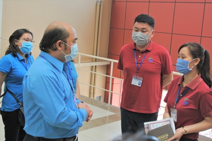 | Liên đoàn Lao động TP đã đến giám sát việc tuyên truyền, phòng, chống dịch COVID-19 tại Công ty TNHH Worldon ở KCN Đông Nam, huyện Củ Chi, TP. Hồ Chí Minh (ảnh: Nam Dương) |