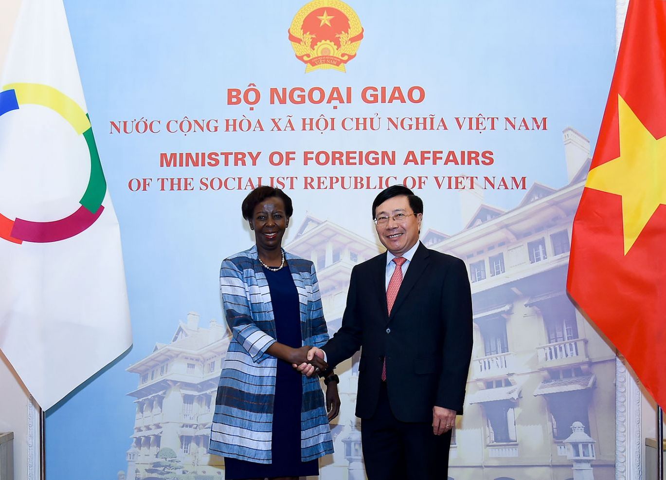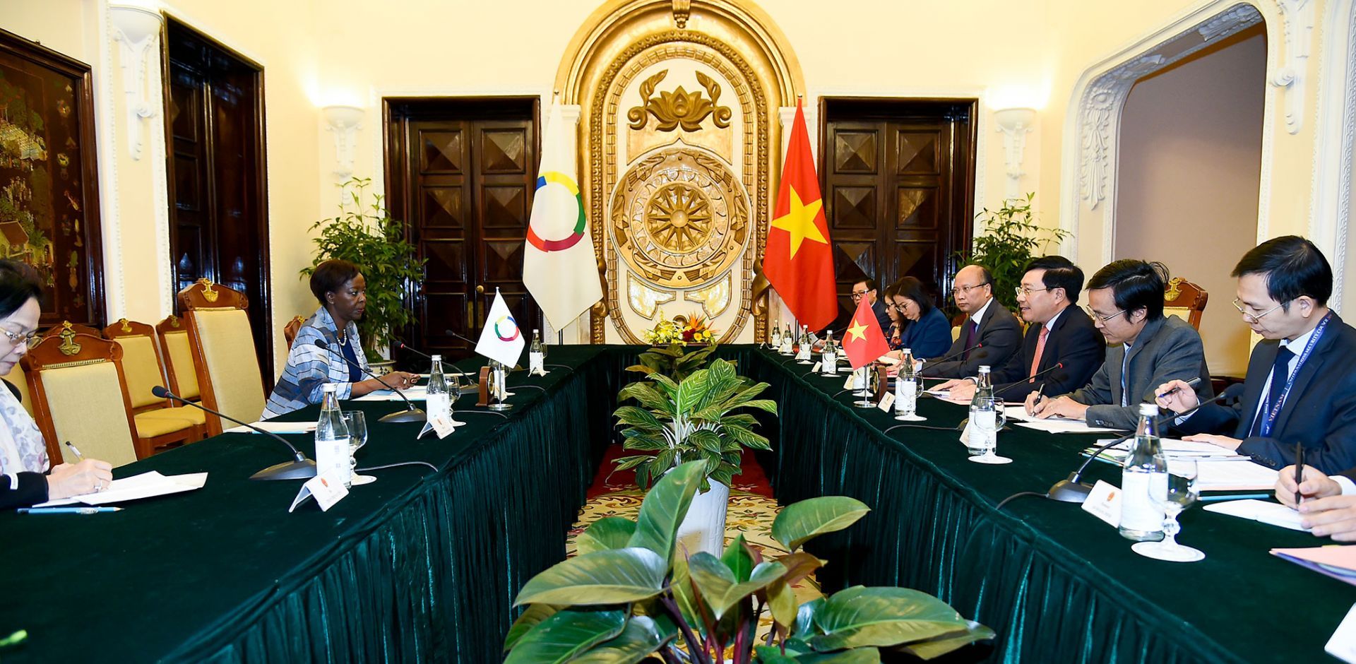 Ngày 6/12/2019, tại Nhà khách Chính phủ, Phó Thủ tướng, Bộ trưởng Ngoại giao Phạm Bình Minh đã hội đàm với Tổng Thư ký Pháp ngữ Louise Mushikiwabo. Cùng dự có đại diện các Bộ: Ngoại giao, Công Thương, Giáo dục và Đào tạo, Nông nghiệp và Phát triển Nông thôn, Thông tin và Truyền thông.