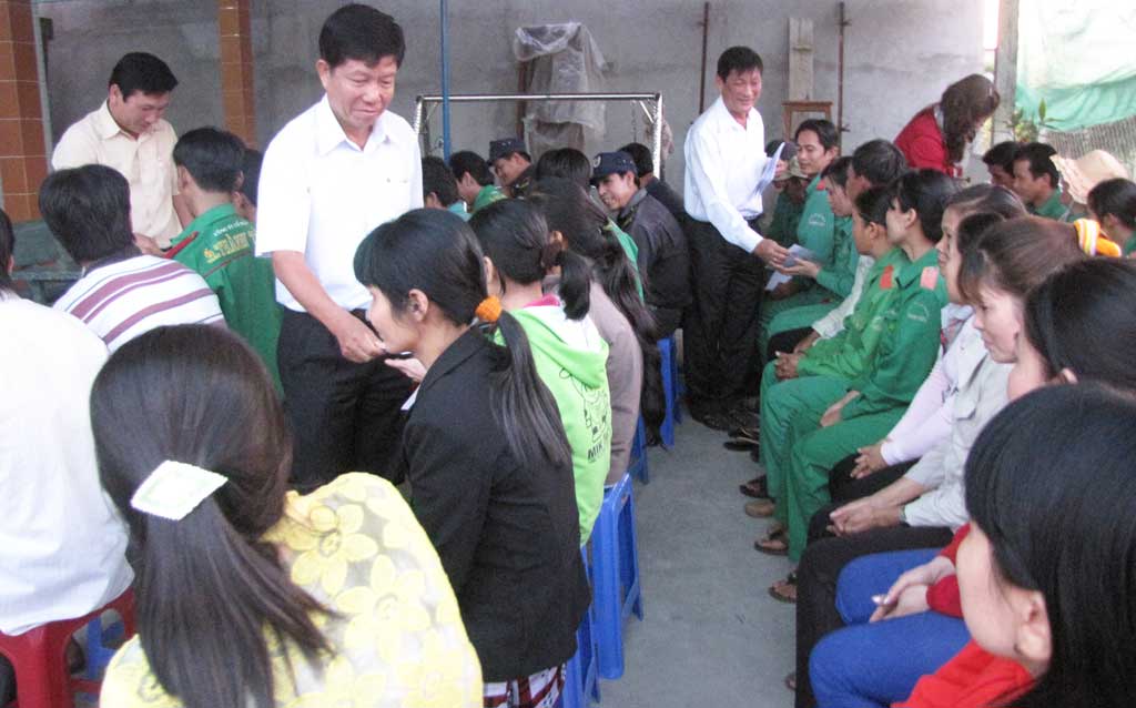 Lãnh đạo các ngành chức năng thăm hỏi, tặng quà, động viên những công nhân không có điều kiện về quê ăn tết