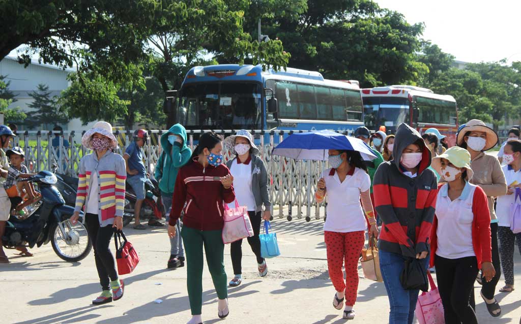 Công nhân Công ty Giày ChingLuh, KCN Thuận Đạo, huyện Bến Lức sau giờ tan ca